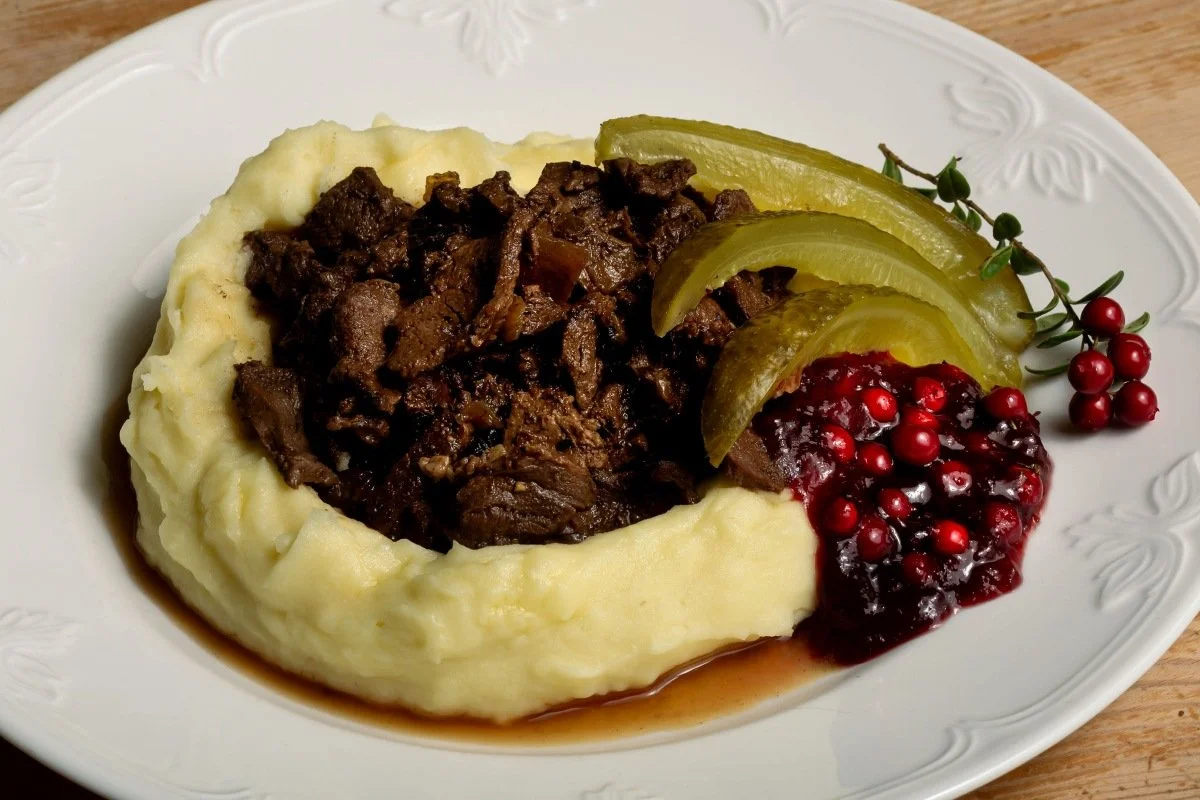 Sautéed Reindeer, Grilled salmon, meatballs or a tasty tomato sauce.